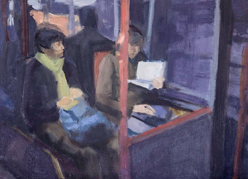 En viaje. Óleo sobre cartón entelado. 20cm x 30cm