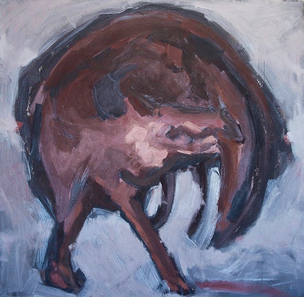 El perro que muerde su cola. Óleo sobre tela. 68cm x 69cm